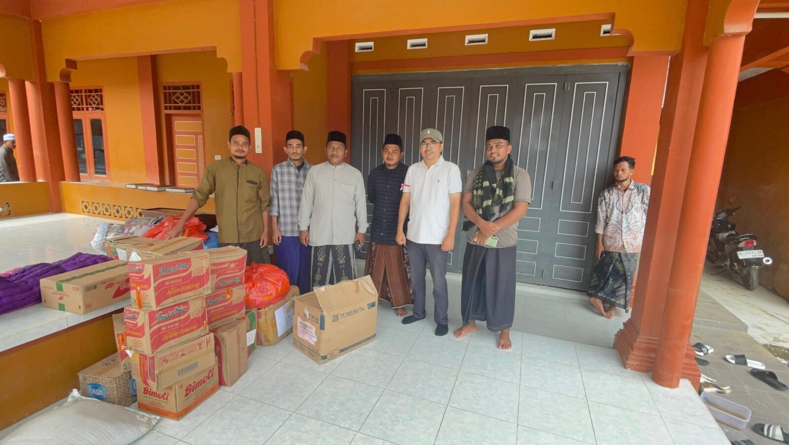 Kegiatan ini turut didampingi oleh personel Polsek Nisam sebagai wujud kehadiran negara dalam mendukung pemulihan pasca banjir dan memastikan kebutuhan santri dapat tercukupi sementara waktu.