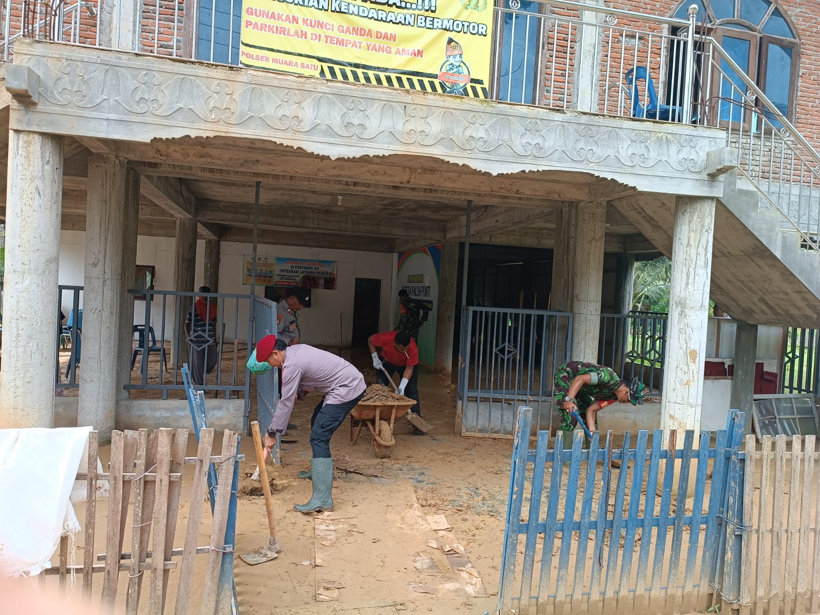 Adapun pihak yang terlibat dalam kegiatan tersebut meliputi personel Polsek Muara Satu, personel Koramil 01/Muara Satu, Geuchik Gampong Paloh Punti, serta masyarakat setempat. Seluruh unsur yang terlibat bahu-membahu membersihkan fasilitas umum yang terdampak banjir.