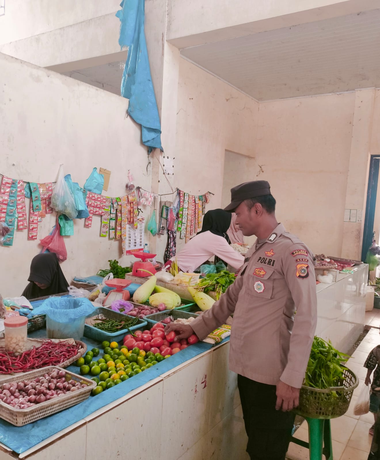 Patroli dialogis tersebut dilakukan oleh Aipda Indra Irawan dengan menyambangi para pedagang dan pengunjung pasar untuk memantau situasi kamtibmas sekaligus menyampaikan imbauan agar masyarakat tetap menjaga ketertiban dan keamanan lingkungan.