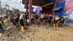 Kegiatan yang dimulai sekitar pukul 10.00 WIB tersebut dipimpin langsung oleh Kapolres Lhokseumawe AKBP Dr. Ahzan, S.H., S.I.K., M.S.M., M.H., sebagai bentuk kepedulian Polri terhadap pemulihan fasilitas umum dan sarana pendidikan pasca bencana banjir.