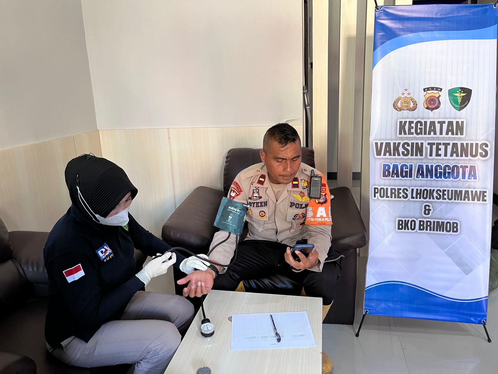 Ia menambahkan, pemeriksaan kesehatan dan pemberian vaksin dilakukan secara bertahap kepada personel yang membutuhkan, khususnya personel BKO Brimob yang tengah melaksanakan tugas pengamanan di wilayah Polres Lhokseumawe.