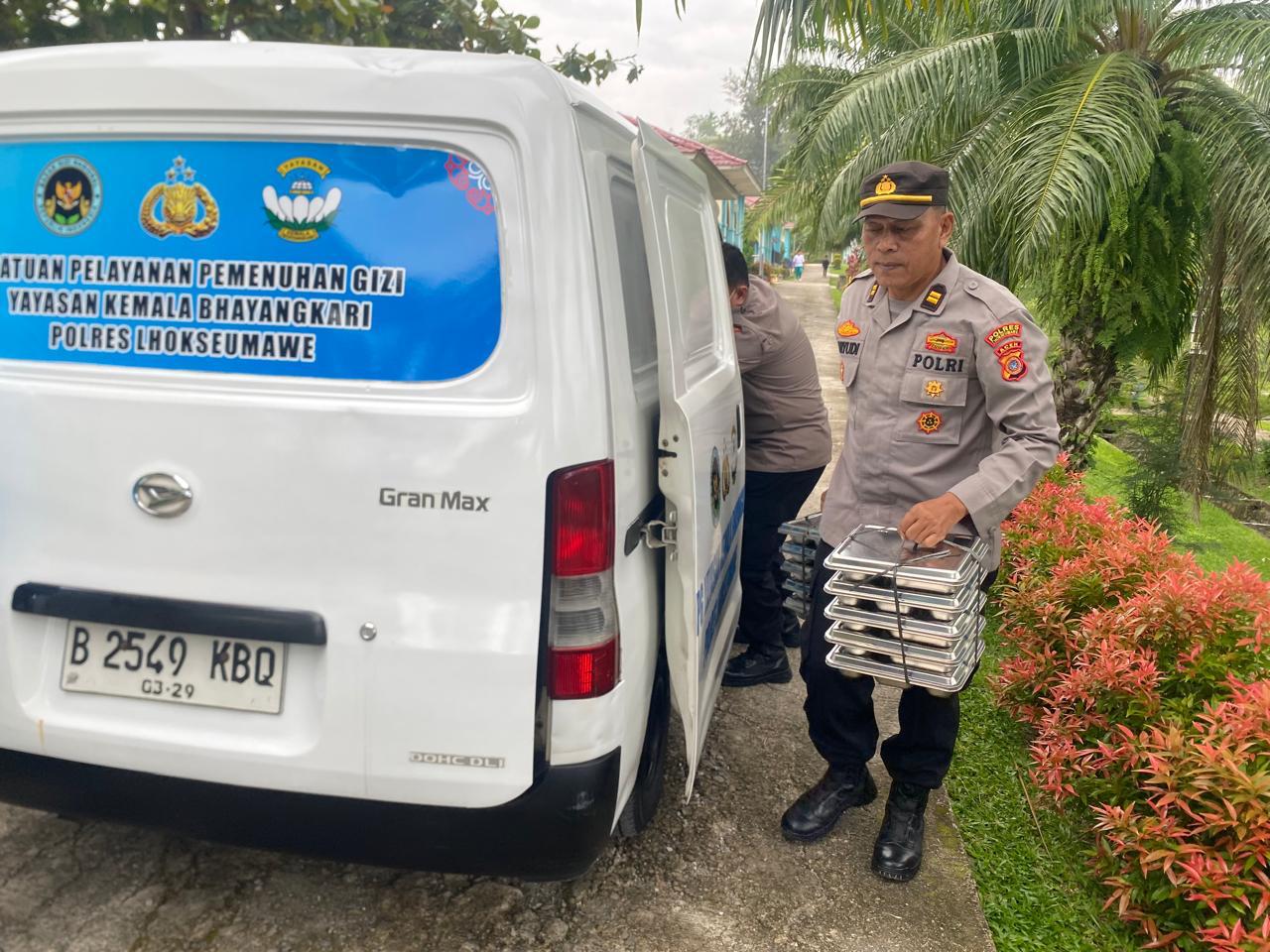 Kapolres Lhokseumawe AKBP Dr. Ahzan., SH., S.I.K., M.S.M., M.H melalui Kasiwas IPTU Wahyudi menyampaikan bahwa pendistribusian hari ini merupakan yang pertama kali dilakukan oleh SPPG Yayasan Kemala Bhayangkari Polres Lhokseumawe, dengan sasaran awal sekolah-sekolah di lingkungan Sukma Bangsa dan PAUD Mandiri.