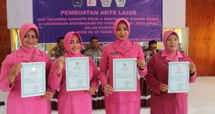 Tibrata News, Lhokseumawe – Bhayangkari Cabang Lhokseumawe memfasilitasi pembuatan 50 akta kelahiran untuk anak warga kurang mampu serta anak keluarga anggota Polri di kawasan Aceh Utara dan Lhokseumawe, Kamis (20/9/2018). Aksi sosial tersebut dilakukan dalam rangka memperingati hari kesatuan gerak bharangkari (HKGB) ke – 66 tahun 2018. Ketua Bhayangkari Lhokseumawe, …