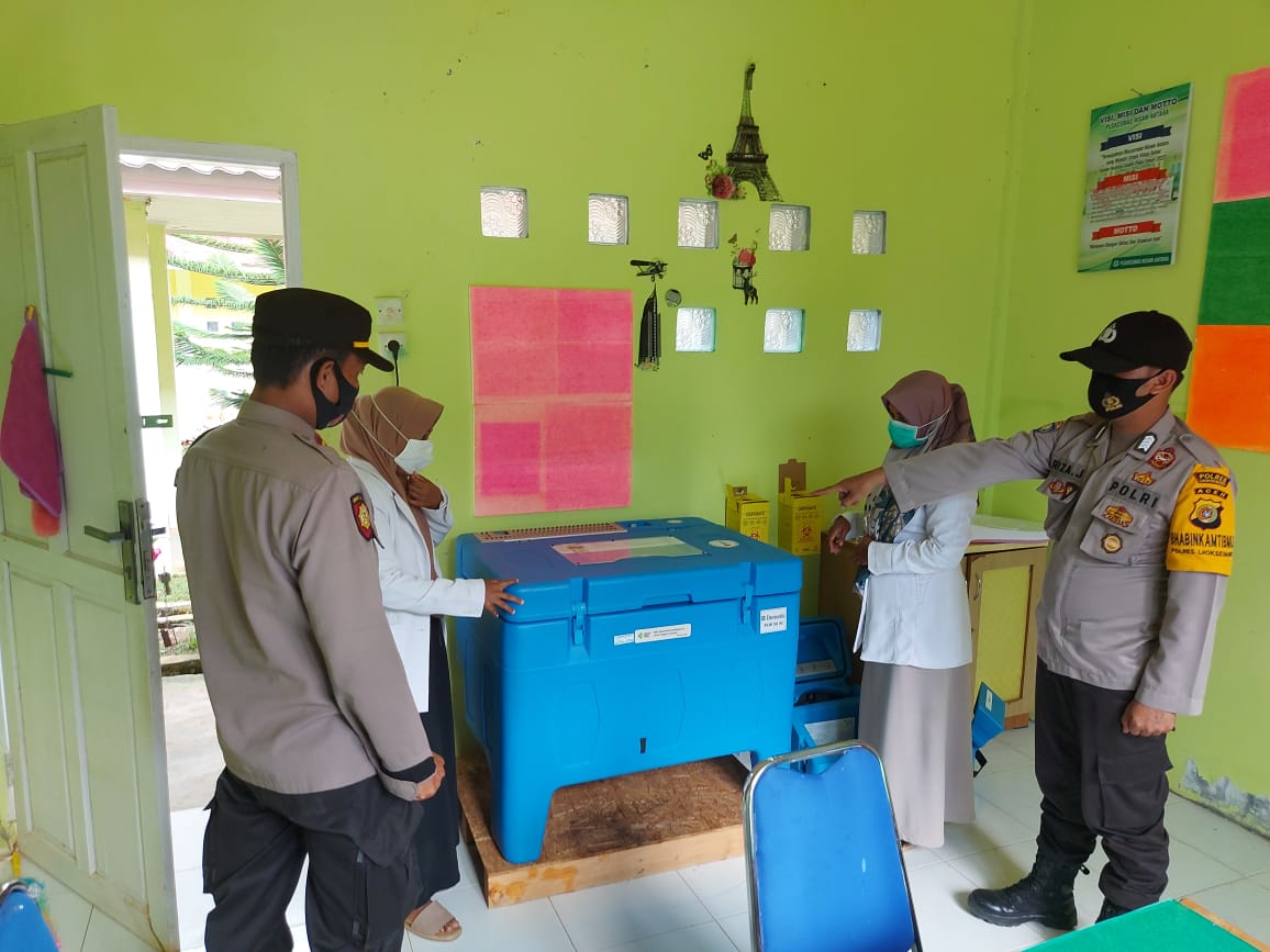 LHOKSEUMAWE - Sub Sektor Nisam Antara melakukan pengecekan dan pengamanan di Puskesmas setempat yang menjadi tempat penyimpanan Vaksin Covid-19 Sinovac,…