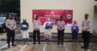 ACEH BESAR – Direktur Samapta (Dirsamapta) Polda Aceh Kombes Pol. Misbahul Munauwar, SH, mewakili alumni Akpol 1991 yang berdinas di Aceh membagikan bantuan sosial (Bansos) berupa sembako kepada masyarakat di Pasar Lambaro, Sabtu (31/7/2021). “Sembako ini kami bagikan kepada warga sebagai ungkapan rasa syukur di HUT ke-30 alumni Akpol 1991 …
