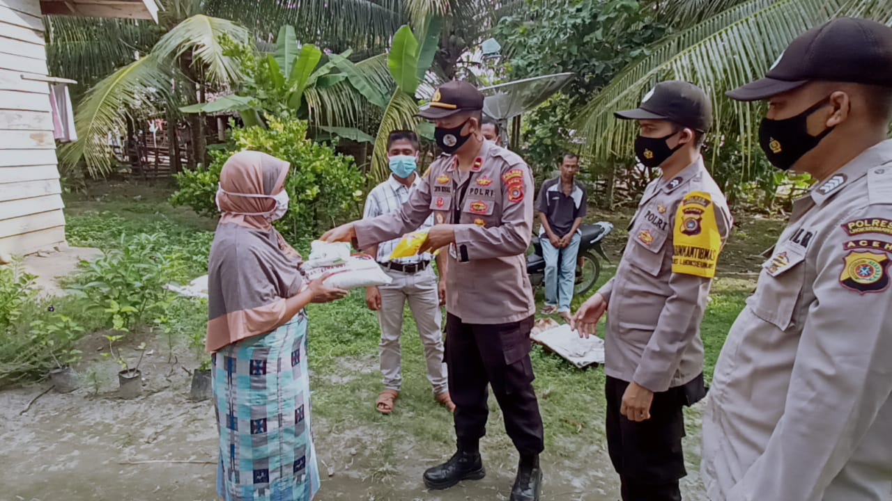 LHOKSEUMAWE - Personil Polsek Kuta Makmur, Polres Aceh Utara menyerahkan bantuan sembilan (sembako) kepada tiga warga terdampak Covid-19, Selasa (29/12/2020).…