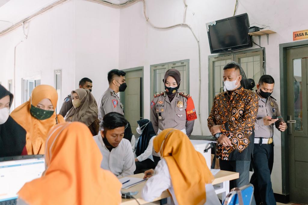 LHOKSEUMAWE - Puluhan warga ikut mendaftar pada kegiatan Vaksinasi Merdeka yang digelar di kantor Samsat Lhokseumawe, Kamis (14/10/2021). Kapolres Lhokseumawe…