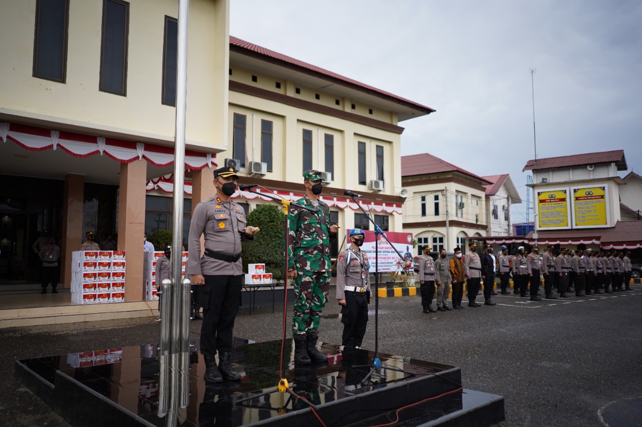 LHOKSEUMAWE - Polres Lhokseumawe menggelar apel bersama Bakti sosial pembagian sembako kepada masyarakat yang diikuti oleh TNI-Polri, Satpol PP-WH, Dinas…