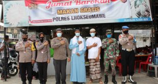 LHOKSEUMAWE – Polres Lhokseumawe kembali melaksanakan program Jum’at Barokah, kali ini kegiatan tersebut digelar di Kecamatan Syamtalira Bayu, Aceh Utara, wilayah hukum Polres Lhokseumawe dengan membagikan 300 porsi nasi kepada masyarakat, Jumat (9/4/2021). Kapolres Lhokseumawe AKBP Eko Hartanto SIK MH melalui Kapolsek Syamtalira Bayu, Iptu Lilisma Suryani SH mengatakan, Jumat …