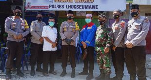 LHOKSEUMAWE- Polres Lhokseumawe kembali menggelar Program Jum’at Baroqah dengan makan gratis bersama warga di salah satu rumah makan di kawasan jalan Medan-Banda Aceh Simpang Eks. PT. Asean, Kec. Dewantara, Kab. Aceh Utara, Provinsi Aceh, Jum’at (24/07/2020) sekitar pukul 13.30 Wib. Tampak di lokasi tersebut sejumlah warga antusias diberikan masker serta …