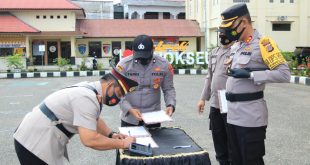 LHOKSEUMAWE – Kapolres Lhokseumawe AKBP Eko Hartanto SIk MH memimpin upacara Serah terima jabatan (Sertijab) Kabag Ren, Kasat Polair dan Kapolsek Kuta Makmur, acara tersebut berlangsung di Mapolres Lhokseumawe, Kamis (7/1/2021). Upacara tersebut dihadiri pajabat utama mulai dari para kabag, kasat, Kapolsek, perwira staf serta sejumlah personil Brigadir Polres Lhokseumawe. …