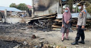 LHOKSEUMAWE – Kapolsek Muara Satu, Ipda Muhammad Hadimas bersama Ketua Ranting Bhayangkari mengunjungi posko pengungsian korban kebakaran di Batuphat Timur, Kec. Muara Satu, Kota Lhokseumawe, Sabtu (24/4/2021). Selain mengunjungi posko pengungsian, Kapolsek turut didampingi ketua ranting Bhayangkari juga meninjau lokasi kebakaran yang menghanguskan 11 unit rumah warga pada Jumat (23/4/2021) …