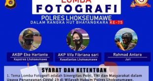 LHOKSEUMAWE – Dalam rangka memeriahkan HUT Bhayangkara ke 75, Polres Lhokseumawe menyelenggarakan lomba fotografi, kompetisi tersebut dibuka untuk umum dengan lokasi pengambilan foto di wilayah hukum Polres Lhokseumawe. Kapolres Lhokseumawe, AKBP Eko Hartanto, SIK, MH melalui Kasubag Humas Salman Alfarisi, SH, MH, RAbu (23/6/2021) mengatakan, lomba fotografi ini mengambil tema …