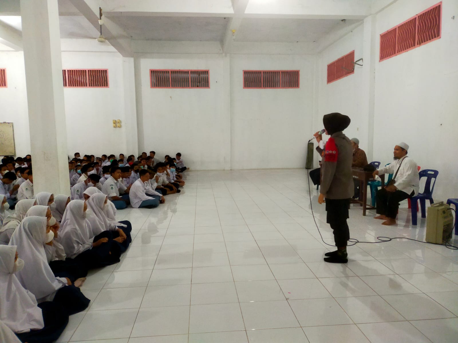 LHOKSEUMAWE - Kapolsek Muara Dua, Ipda Nina Ervianti SH MH melakukan sosialisasi vaksinasi kepada siswa/santri Dayah Ulumuddin, Desa Uteun Kot,…