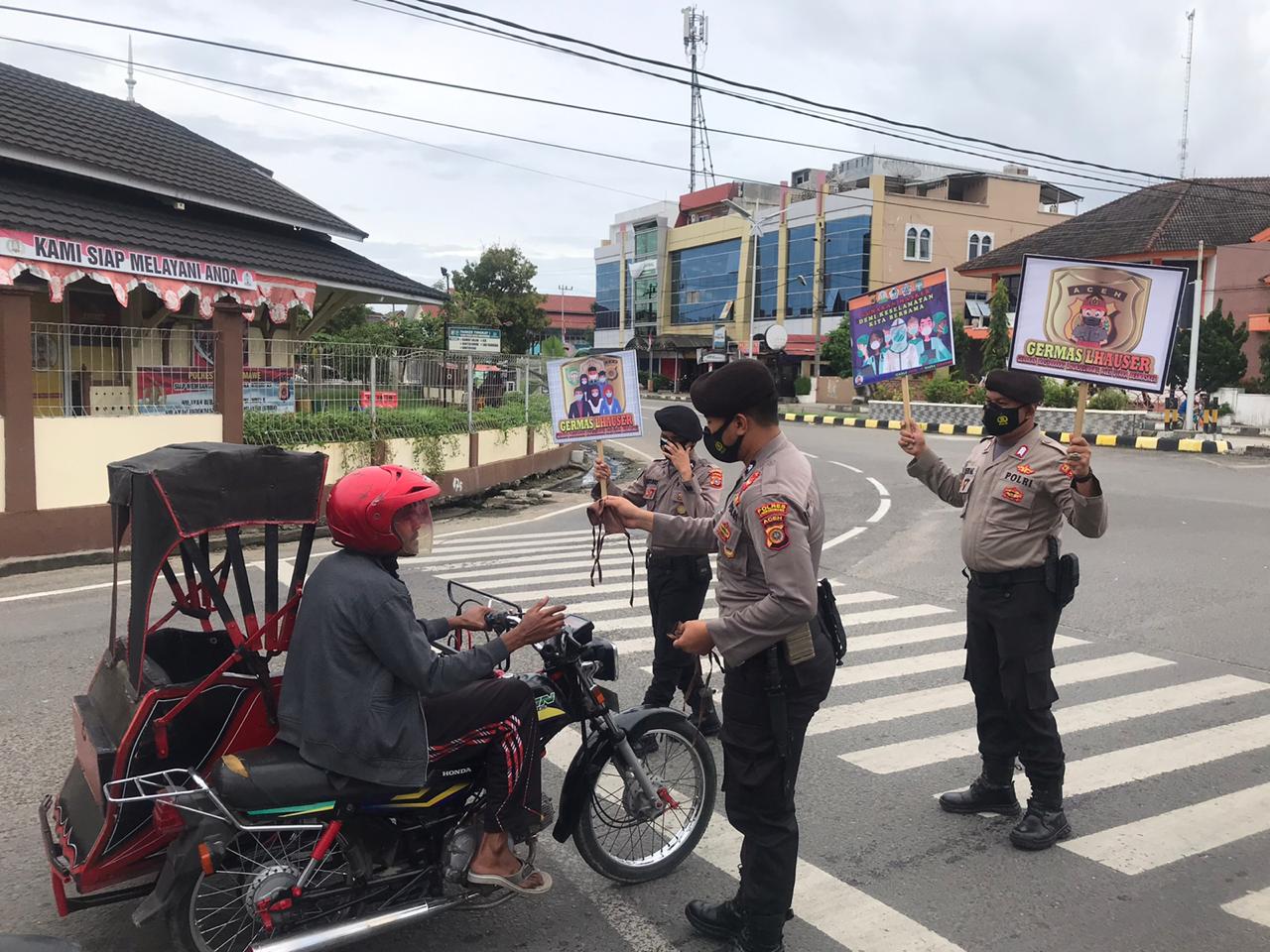 LHOKSEUMAWE - Tim Unit Reaksi Cepat (URC) Sat Sabhara Polres Lhokseumawe melakukan kegiatan pembagian masker kepada masyarakat dan pengendara becak,…