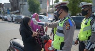 LHOKSEUMAWE- Personil Polantas melakukan pemeriksaan suhu tubuh para pengguna jalan baik pengemudi sepeda motor dan mobil, penumpang sepeda motor serta pengemudi dan penumpang kendaraan pribadi maupun angkutan umum yang berlangsung di depan Poslantas Cunda Jalan Medan-Banda Aceh, Kecamatan Muara Dua, Kota Lhokseumawe. Kapolres Lhokseumawe AKBP Ari Lasta Irawan, S.I.K …