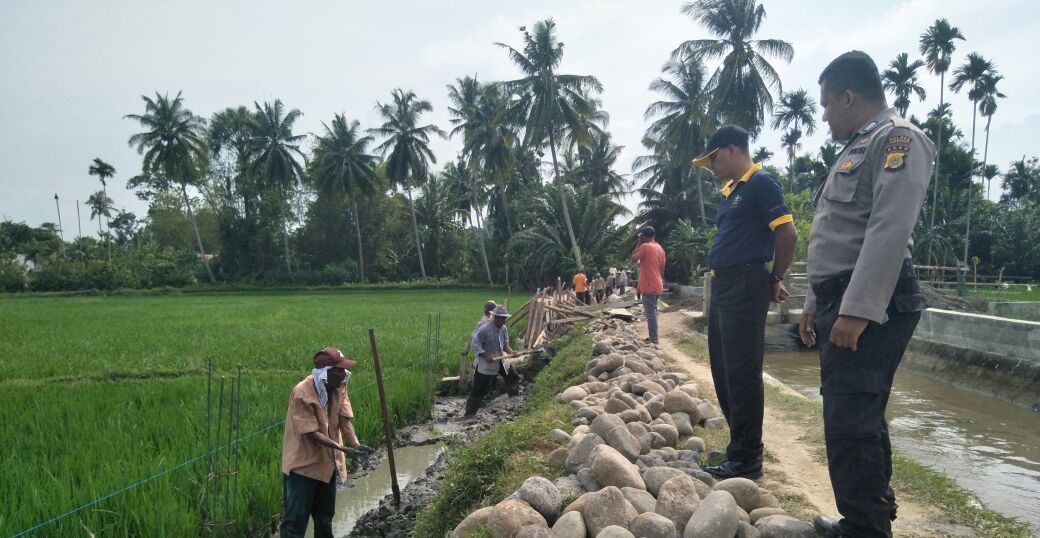 LHOKSEUMAWE- Personil Polsek Syamtalira Bayu Resor Lhokseumawe pantau dan memberikan pelayana pengamanan pembangunan jalan di tanah tanggul irigasi Desa Baro…