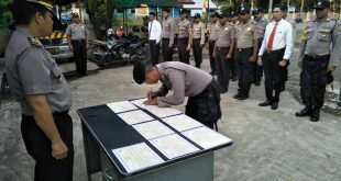 LHOKSEUMAWE-Personel Polsek Dewantara melakukan penandatanganan Pakta Integritas, di Mapolsek setempat, Rabu (16/8/2017). Hal itu dilakukan untuk mencegah dan memberantas penyalahguna narkoba di kalangan di lingkungan kerja Kepolisian. Kapolres Lhokseumawe AKBP Hendri Budiman S. Ik, MH melalui Kapolsek Dewantara AKP Erfansyah Putra mengatakan dalam pelaksanaan penandatanganan tersebut masing-masing pejabat fungsional ataupun …