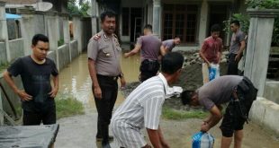 LHOKSEUMAWE- Polisi bantu warga membuat karung pasir penahan air di lokasi jebolnya tanggul yang membuat rumah sejumlah warga terdampak banjir di tiga Desa Kecamatan Samudera Kabupaten Aceh Utara.”kamis pagi (04/01/2018) sekitar pukul 06.00 Wib. Tiga desa yang terdampak banjir tersebut yakni Desa tiga desa yakni, desa tanjung awe tinggi air …