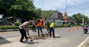 LHOKSEUMAWE – Guna mencegah terjadinya insiden kecelakaan lalu lintas, Sat Lantas Polres Lhokseumawe bersama stakeholder terkait menambal lubang di badan jalan jalur lintas Nasional, Gampong Panggoi, Kec. Muara Dua, Kota Lhokseumawe, Jumat (30/7/2021). Kapolres Lhokseumawe, AKBP Eko Hartanto SIK MH melalui Kasubag Humas Salman Alfarisi SH MH mengatakan, tujuan dari …