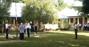 Lhokseumawe- Kapolsek Kuta Makmur Pimpinan Upacara Bendera di lapangan upacara SMP Negeri 1 Kuta Makmur Kabupaten Aceh Utara yang dihadiri Kepala sekolah, Dewan guru, Seluruh siswa dan siswi sekolah tersebut.” Senin pagi (25/9/2017) Berbagai arahan disampaikan, Kapolsek juga mensosialisasikan tentang bahaya Narkoba serta tata tetib berlalu lintas dalam berkendaraan. Saat …