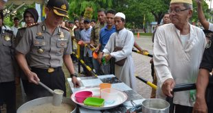 LHOKSEUMAWE- Kapolres Lhokseumawe AKBP Hendri Budiman berikan pelayanan kepada masyarakat dengan menuangkan bubur kanji Rumbi ke masyarakat yang datang berbondong untuk mendapatkan sedekah kanji rumbi di Mesjid Islamic Centre Kota Lhokseumawe.” Jum’at sore (9/6/2017) Hal tersebut berlangsung ketika Polres Lhokseumawe memberikan sumbangan dimesjid Islamic Centre untuk kebutuhan pemberian takjil kepada …