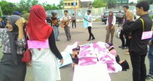LHOKSEUMAWE- Polres Lhokseumawe berikan pelayanan pengamanan aksi damai kepada massa dari Ikatan Mahasiswa Unimal Fakultas Akuntansi yang berujuk rasa di bundaran tugu rencong Simpang Kuta Blang, Kecamatan Banda Sakti Kota Lhokseumawe,” selasa 23/5/2017 pukul 17.00 WIB Terlihat salah satu pengunjuk rasa membawa poster dan spanduk diantaranya bertuliskan Lindungi para pemberantas …