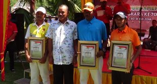 Tribratanews-tribratanews-reslhokseumawe.aceh.polri.go.id- Kapolda Aceh Irjen Pol Husein Hamidi menyerahkan piagam, tropi dan dana pembinaan kepada juara Golf untuk katagori altel dalam rangka open Turnamen Golf Kapolda Aceh 2016 dalam rangka HUT Ke-70 Bhayangkara di padang Golf Komplek Arun, Batuphat Lhokseumawe, (31/7/2016) Kapolres Lhokseumawe selaku Ketua Panitia AKBP Hendri Budiman, SH, S.Ik, …
